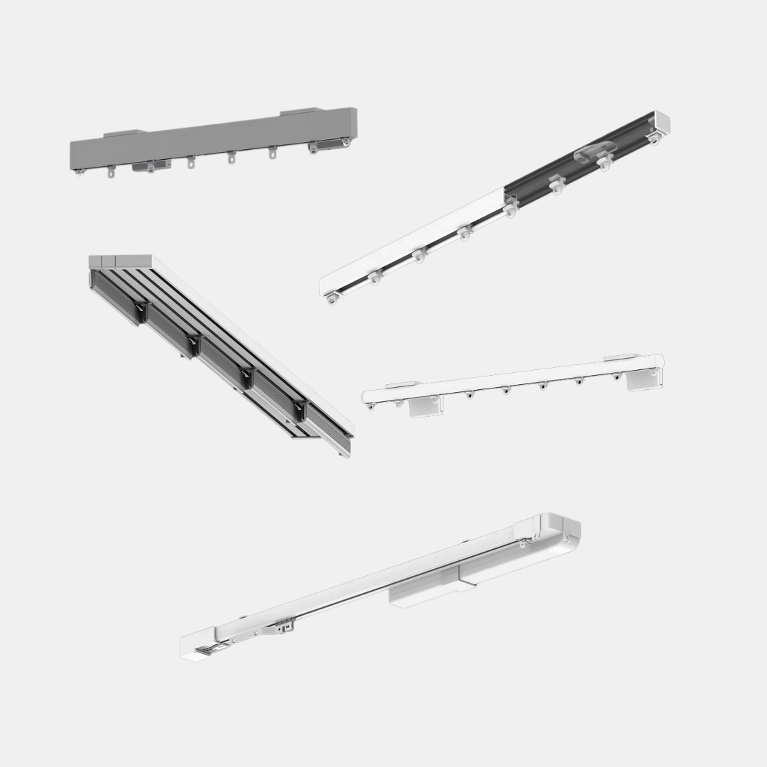 Ve studiu máme velký výběr kolejnicových systémů. Každý z nich se hodí pro jiný typ použití – od nenápadných stropních lišt po designové profily pro závěsy i záclony na míru. Zajistíme kompletní realizaci včetně návrhu, výběru vhodného typu kolejnice a odborné montáže naším zkušeným technikem – přesně podle potřeb vašeho interiéru.